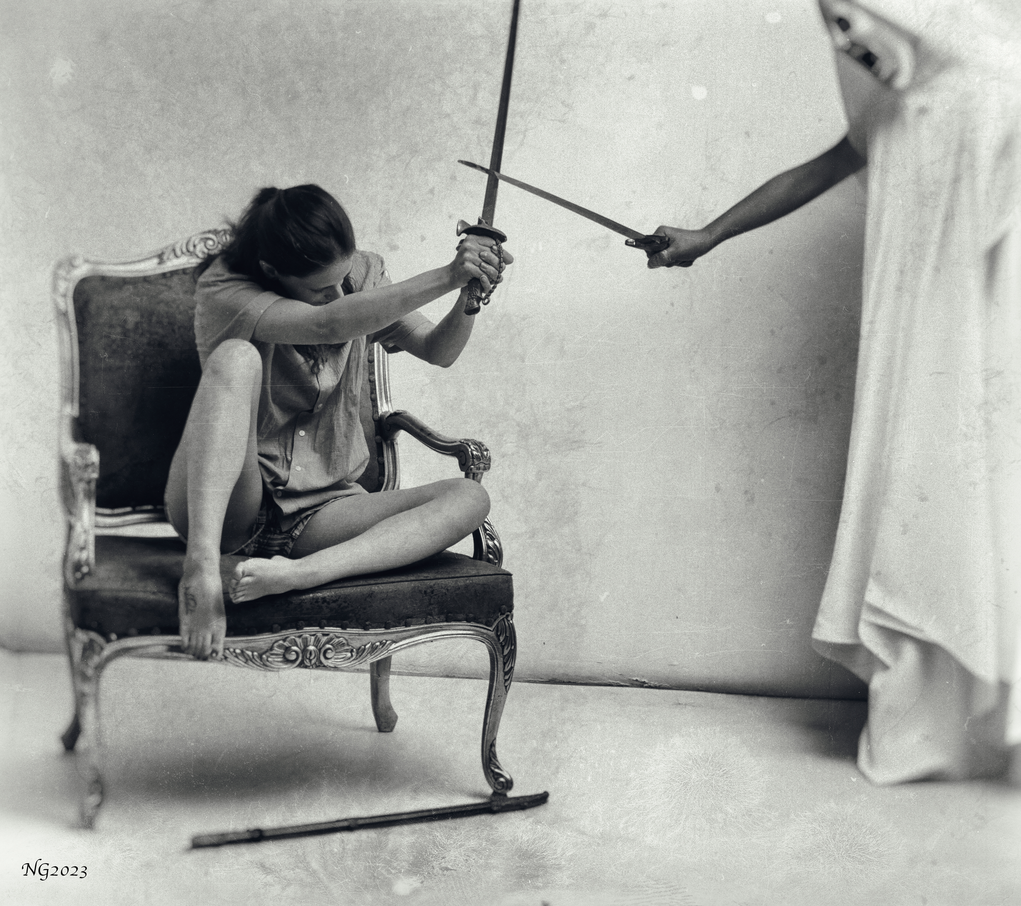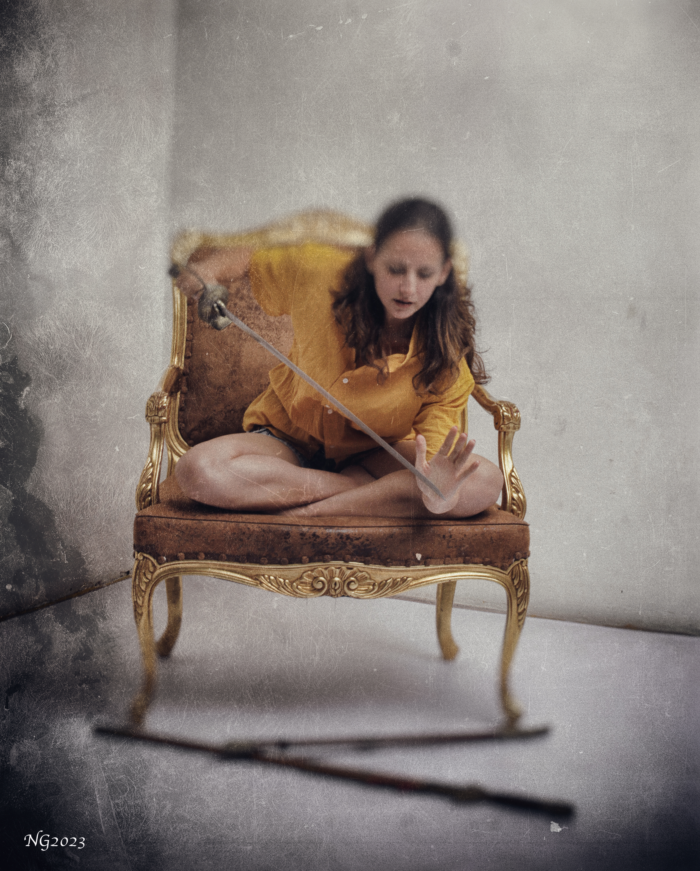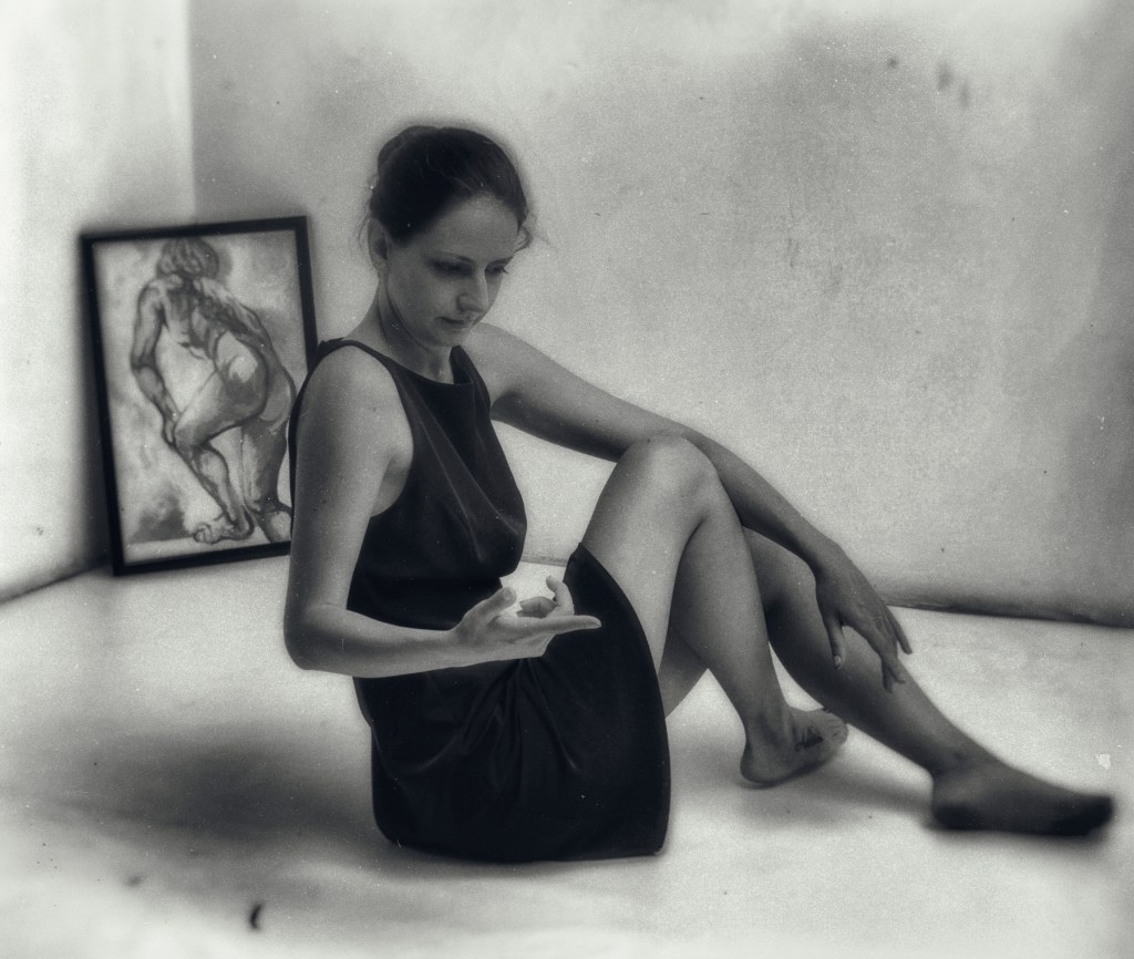 Finito il set, per il quale Valentina aveva proposto nei giorni precedenti uno spunto per una o più foto da usare per il suo sito (variazioni espressive, con tecniche molto vicine a quelle che io spesso utilizzo), il mio lavoro di sviluppo, ancora in progress, ha generato una mappa di libere associazioni che ho trasformato in una amplificazione successiva, in camera chiara, degli scatti.