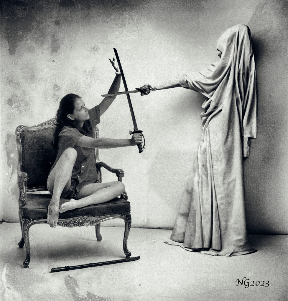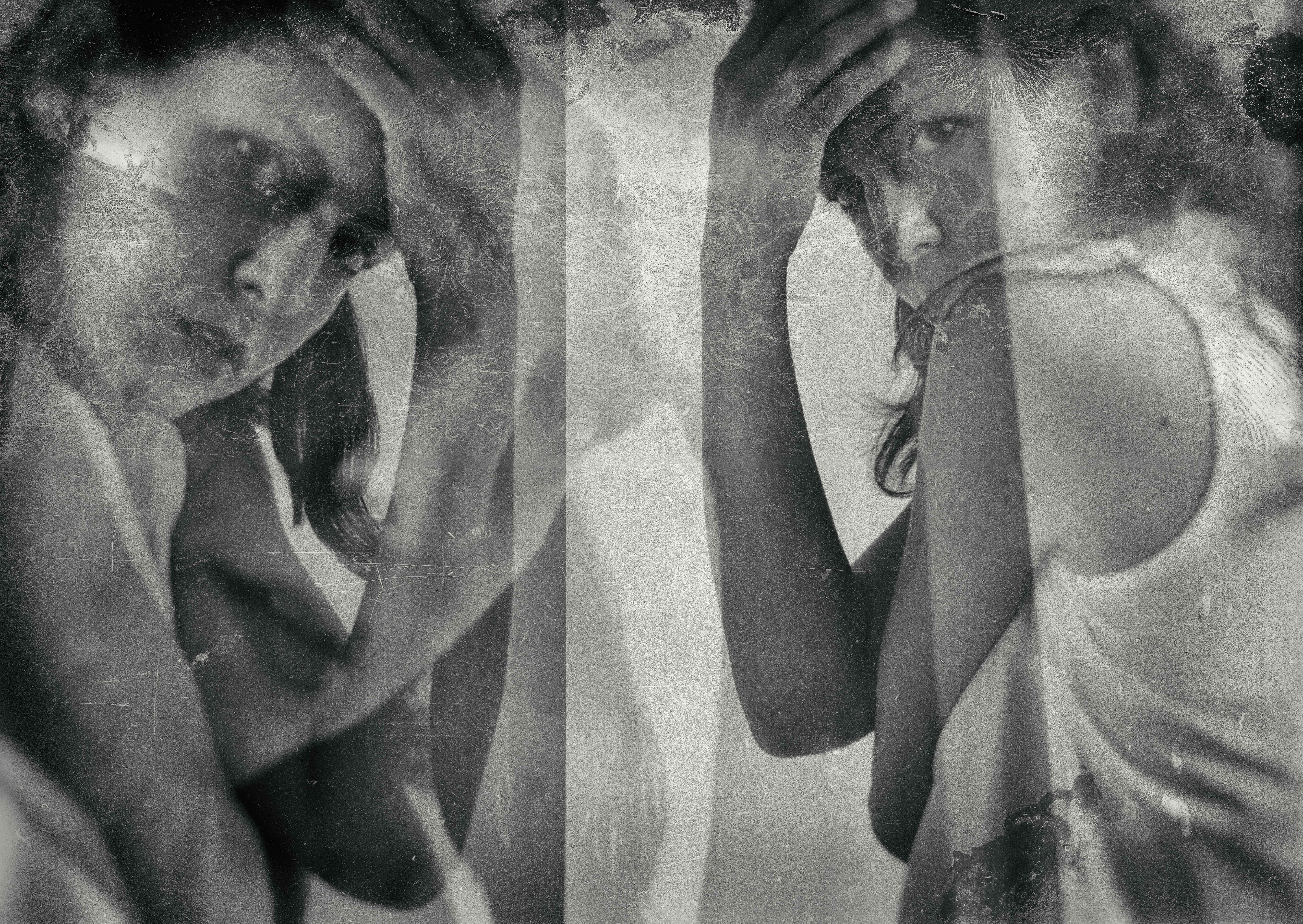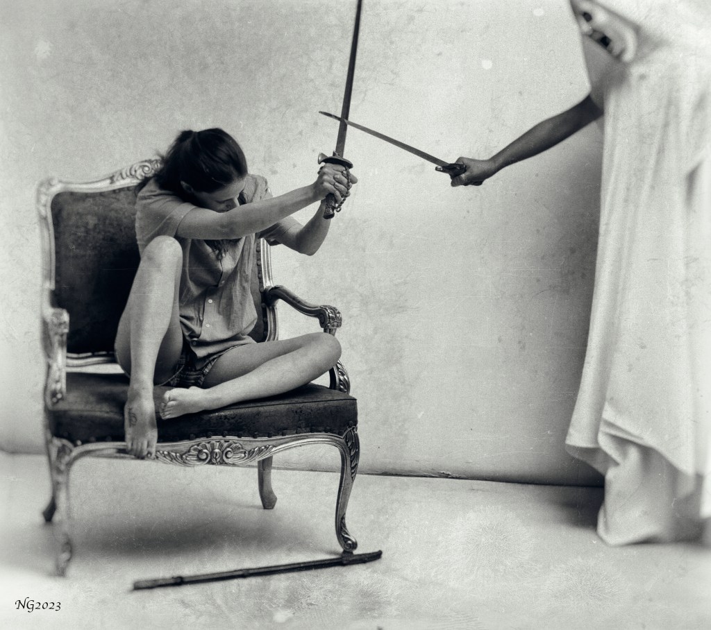 Finito il set, per il quale Valentina aveva proposto nei giorni precedenti uno spunto per una o più foto da usare per il suo sito (variazioni espressive, con tecniche molto vicine a quelle che io spesso utilizzo), il mio lavoro di sviluppo, ancora in progress, ha generato una mappa di libere associazioni che ho trasformato in una amplificazione successiva, in camera chiara, degli scatti.