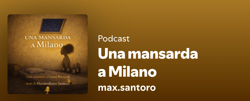 “Un mansarda a Milano” è infatti la prima uscita, recentissima, del suo podcast, peraltro assai curato sia nella veste, sia nella sostanza.